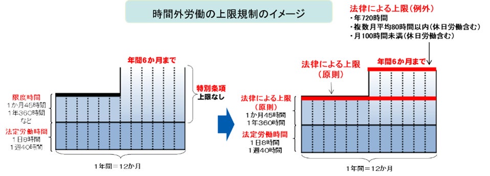 ※時間外労働が月45時間を超えるのは、年6回までの規制は適用されません。