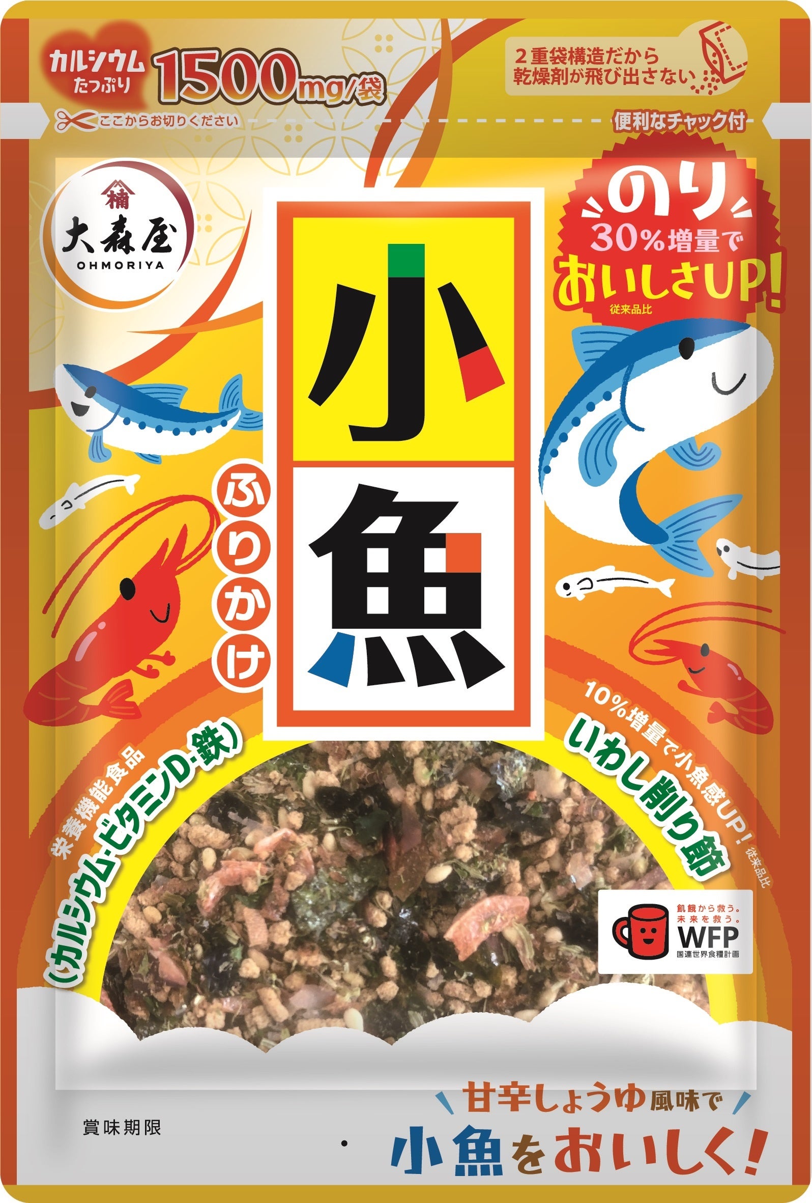 栄養機能食品が3種類(カルシウム・ビタミンD・鉄)になり、より健康感アップ!新たに味付いわし削り節を増量し、小魚感をUPしました!また、カルシウムを増量しました。(1,500mg配合/袋)