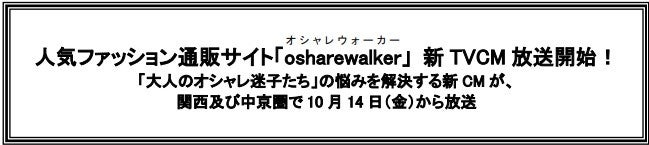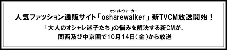 人気ファッション通販サイト「osharewalker(オシャレウォーカー)」 新TVCM放送開始!「大人のオシャレ迷子たち」の悩みを解決する新CMが、関西及び中京圏で10月14日(金)から放送