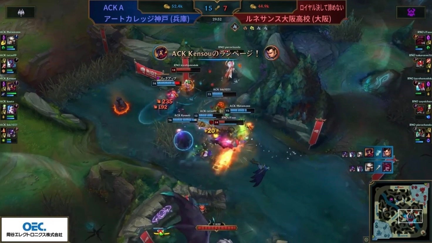 「League of Legends(リーグオブレジェンド)部門」においては、前大会の出場校168チームに対し、今大会は165チームとなった。出場校は少なくなり、規模が小さくなってしまったように見えるが、まったく逆である。前大会までは、同校での出場チーム数の制限はなかった。そのため、本校も6チームを出場させていた。だが、今大会では、規定により「同校からは3チームまで」となったため、今大会は前大会に比べ出場チーム数は少なくなったのであろう。これは大会主催側の「様々な学校が活躍の場を広げて欲しい」との考えがあってのことだ。