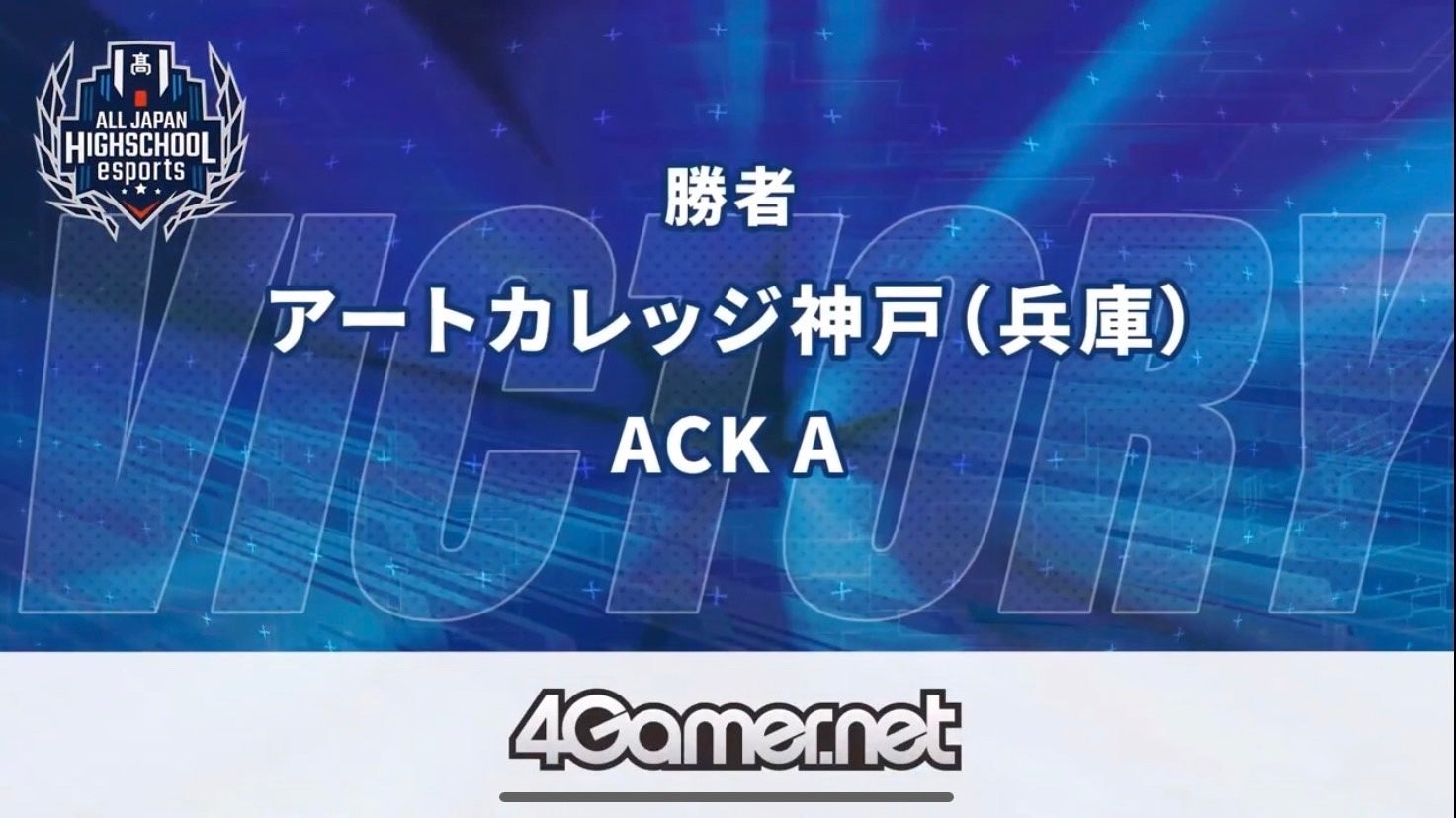 専門学校アートカレッジ神戸高等課程(本部:兵庫県神戸市六甲アイランド、以下本校)の選手5名が、2021年12月26日(日)に開催された、一般社団法人全国高等学校eスポーツ連盟と株式会社毎日新聞社主催の「第4回全校高校eスポーツ選手権」(以下、今大会)の決勝大会に出場し、出場校165チームの中から「ACK A」が準優勝を獲得した。