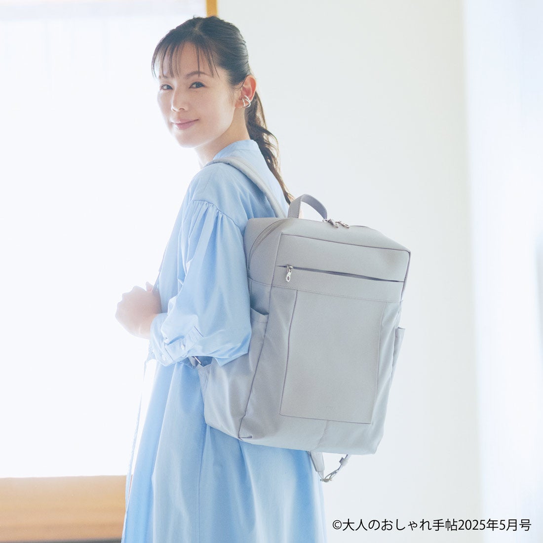 春の弾む気分にぴったりの、ライトグレーのリュック。
