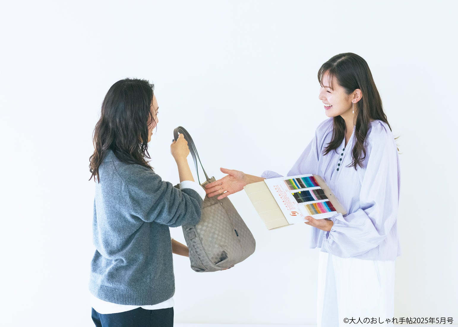 「使いやすさはもちろん、大人の女性が持ちやすいシンプルさに、ちょっと遊び心を加えたアイテムを考えました」と、小西真奈美さん。 フォルムはもちろん、色選びにもこだわりました。 どんなシーンでも持ちやすい定番カラーとともに、春の光に映える軽やかなトーンのカラーをセレクト。 バッグを開けるたびに目に入る内装の色にもこだわり、施策を重ねてラインナップが完成しました。