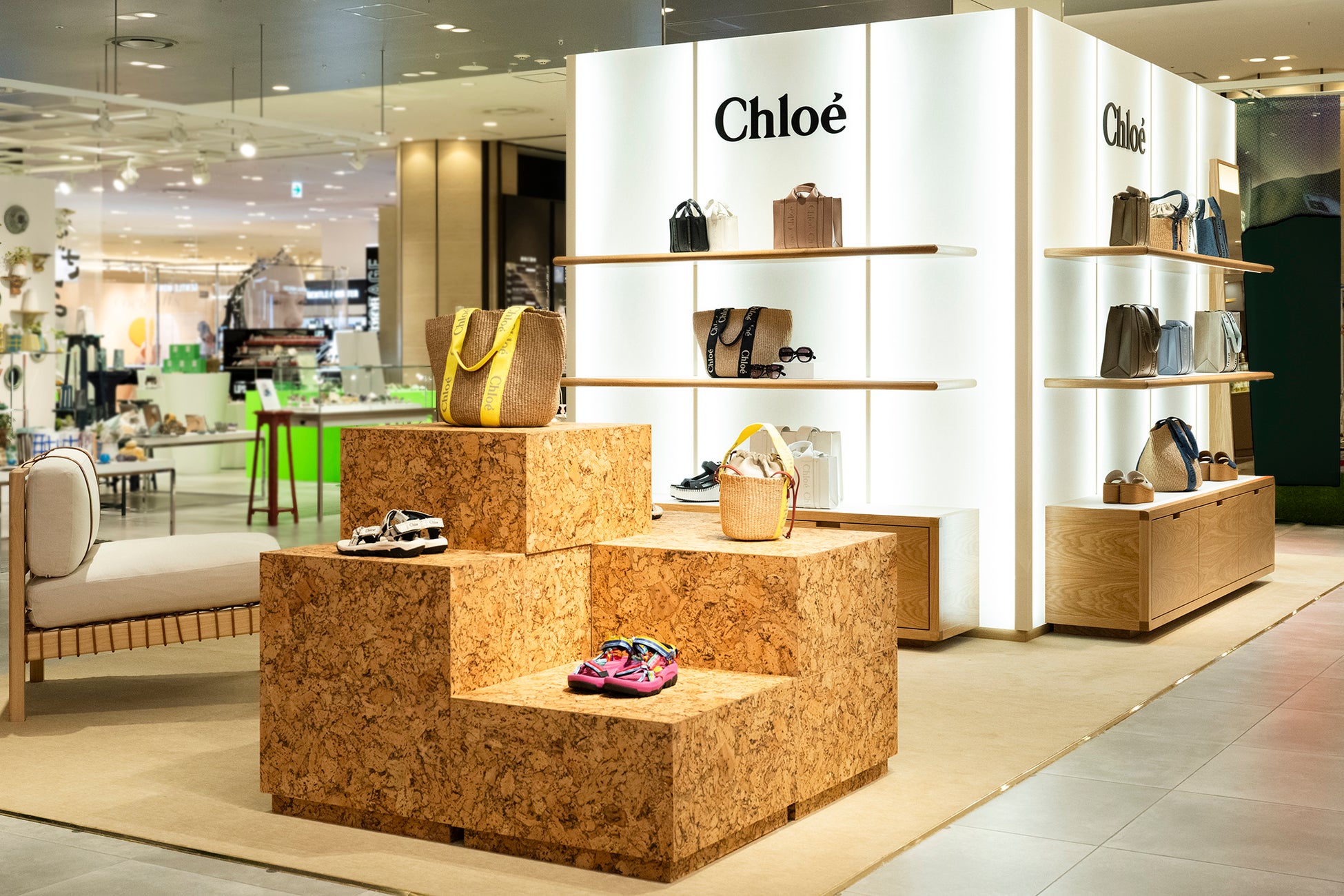 6月14日、クロエは阪急うめだ本店3階に、アクセサリーにフォーカスしたポップアップブティックをオープンします。秋まで長期展開されるポップアップブティックは、第一弾としてバッグとシューズを中心に、サングラスやスカーフといったアクセサリーを含むクロエのサマー・エッセンシャルコレクションをご紹介します。オーク材を贅沢に取り入れた店内には、クロエのレディ・トゥ・ウェアにインスピレーションを得たプリーツ折りの紙材やコルク素材で造られたポディウム、プラントといった自然素材が豊富に用いられます。ホワイトトーンで統一された壁面に柔らかな光が際立ち、優しいムード溢れる空間が、訪れる人を迎え入れます。