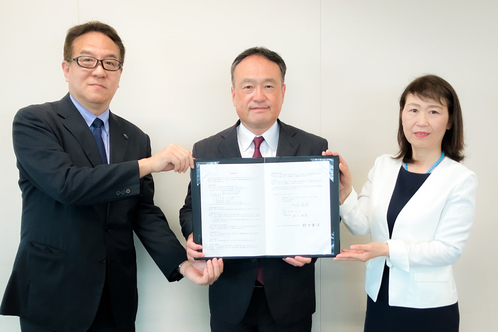 左から、熊本県商工労働部産業振興局長 野中 眞治氏、Horizon One株式会社代表取締役社長 大和 淑晃、熊本市経済観光局長 村上 和美氏