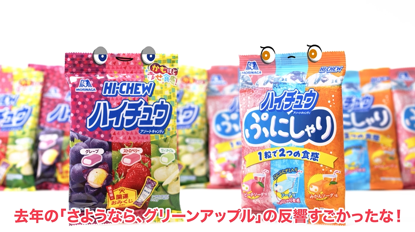 本動画では、「ハイチュウ」たちが喋り出し、個性をぶつけ合いながら食感をアピールします。動画内で流れる「くるみ割り人形-葦笛の踊り(第2幕)」と「ハイチュウ」たちの会話劇のギャップでよりシュールな動画に仕上がっています。それぞれ食感もキャラも違った「ハイチュウ」たちによるコミカルな掛け合いに注目です。