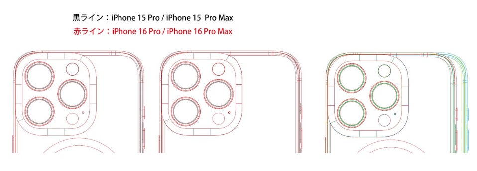 iPhone 16 Pro、iPhone 16 Pro MaxはiPhone 15 Pro、iPhone 15 Pro Maxとカメラ形状は変わらない