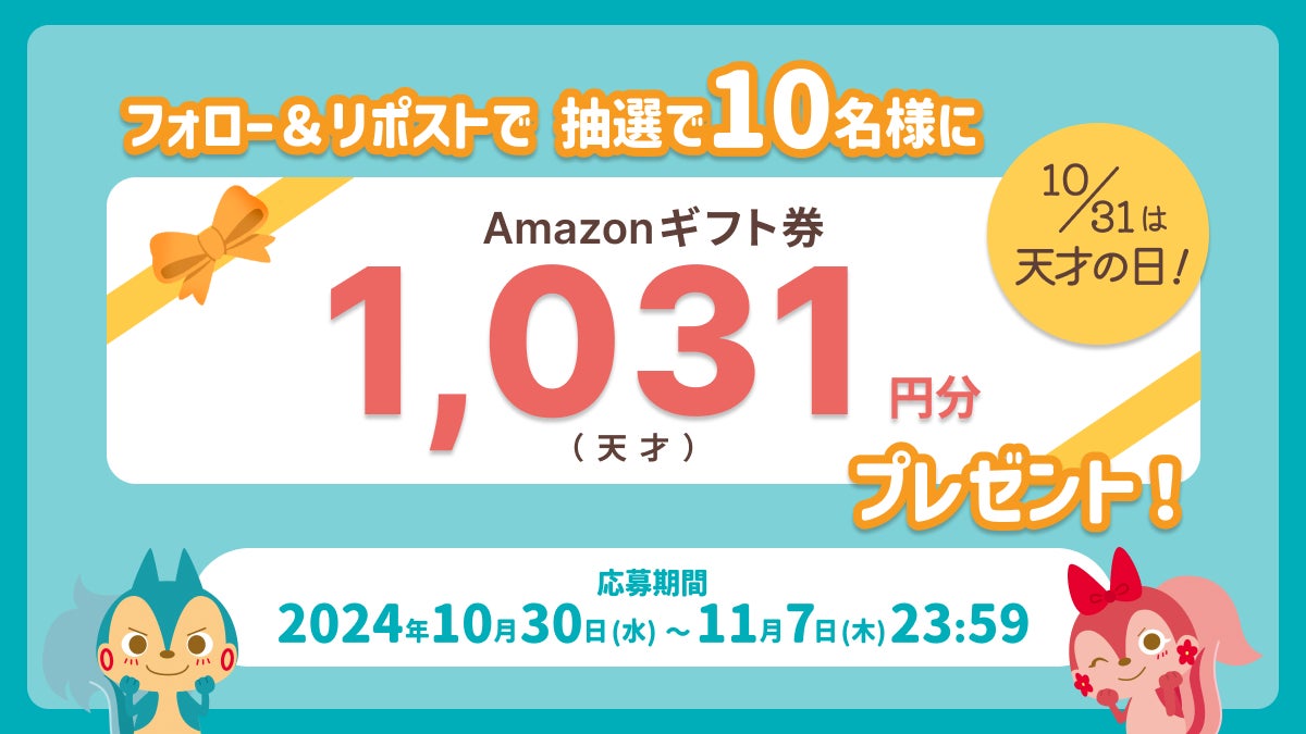 事務局の厳正なる選考により10名様に、Amazonギフト券1,031円分をプレゼントします。