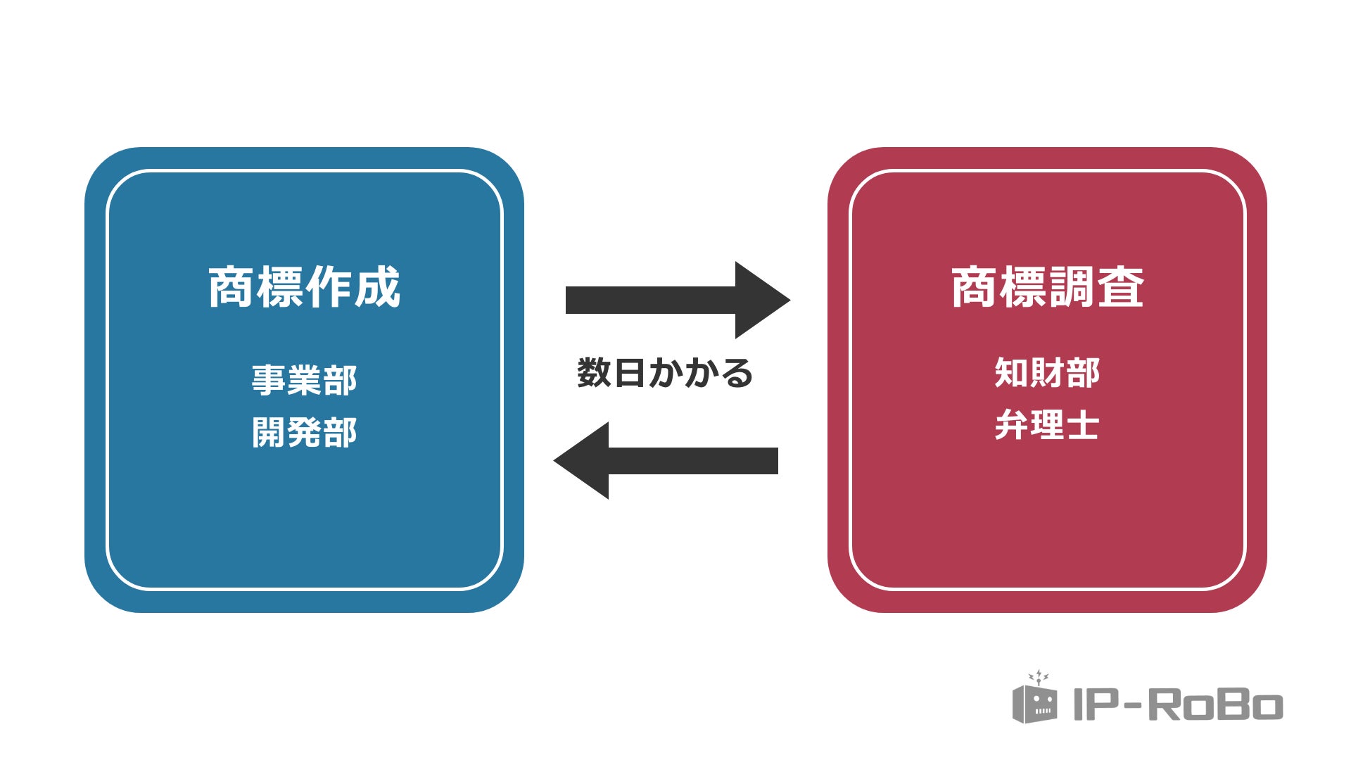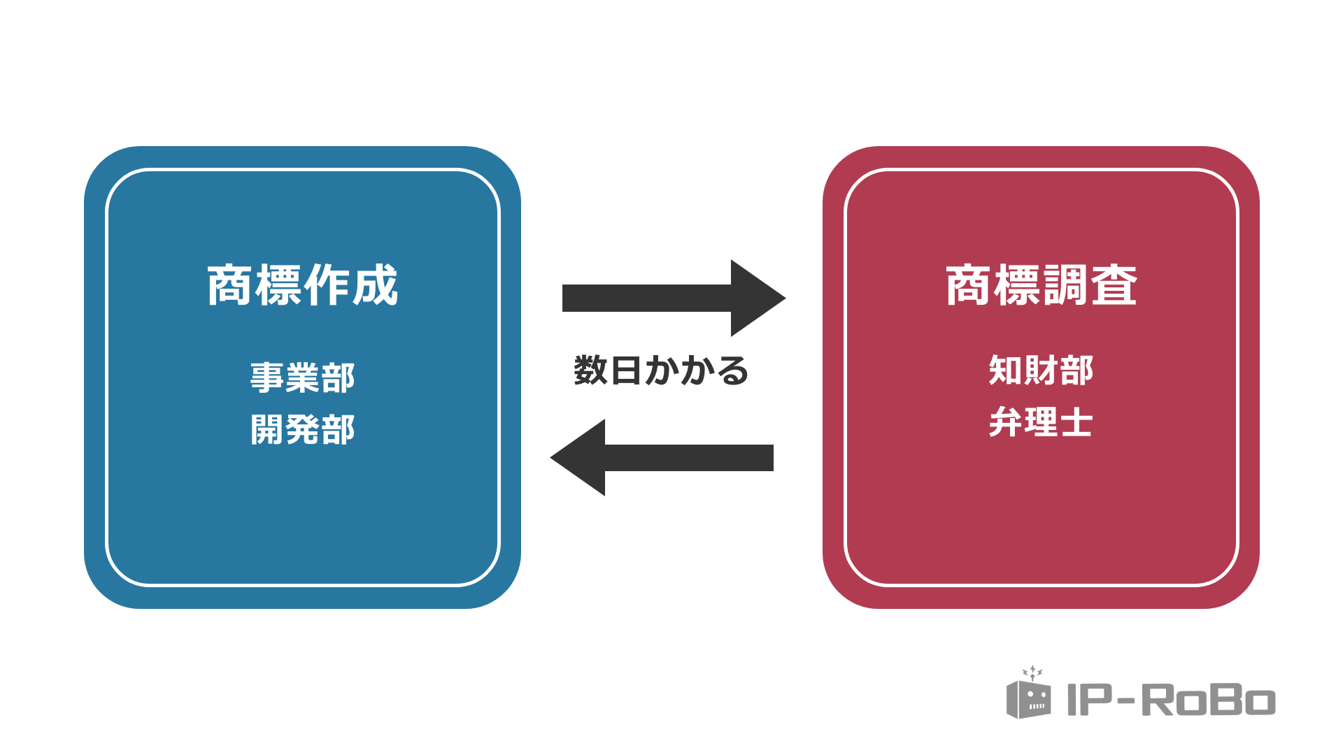 通常は、商標作成者(事業部・開発部)と商標調査者(知財部・外部弁理士)が完全に分離していることから、商標の確定までに多大な時間とコストが必要となり、商品やサービスのリリース遅延にも繋がっていました。