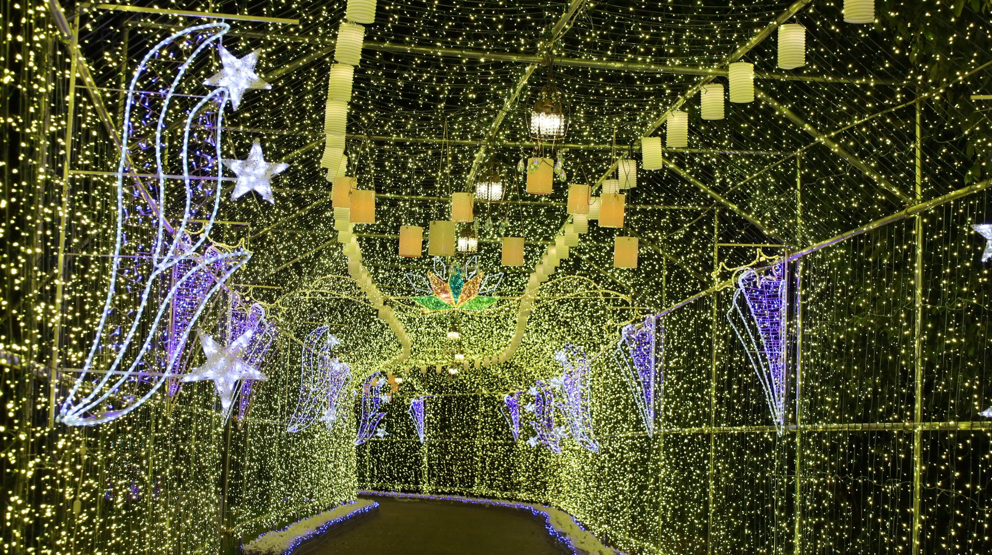 光のアーチに包まれた煌びやかな「光のトンネル」