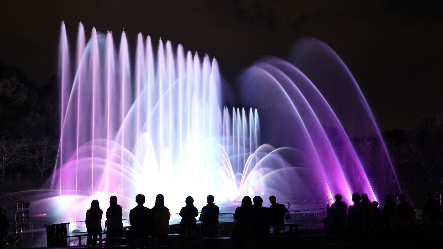 音楽に合わせて色鮮やかな水と光が一体となって踊るように動きます。