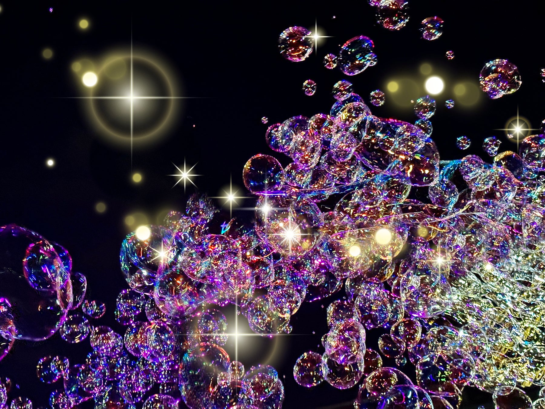 七色に光るシャボン玉は夢のような空間をつくり出します。