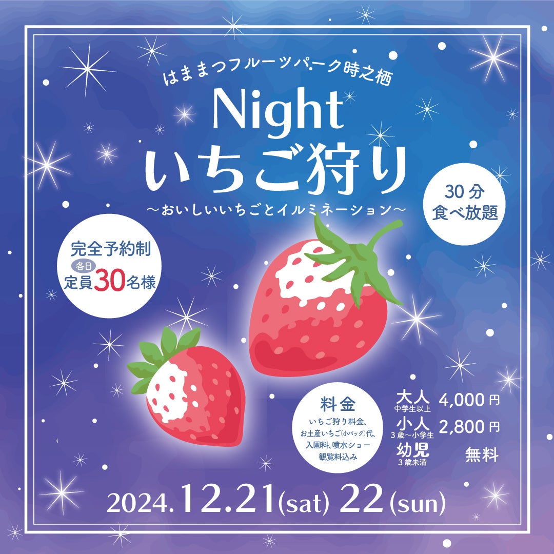 昼間と雰囲気の違う「ナイトいちご狩り」とイルミネーションの両方を楽しめる2日間。