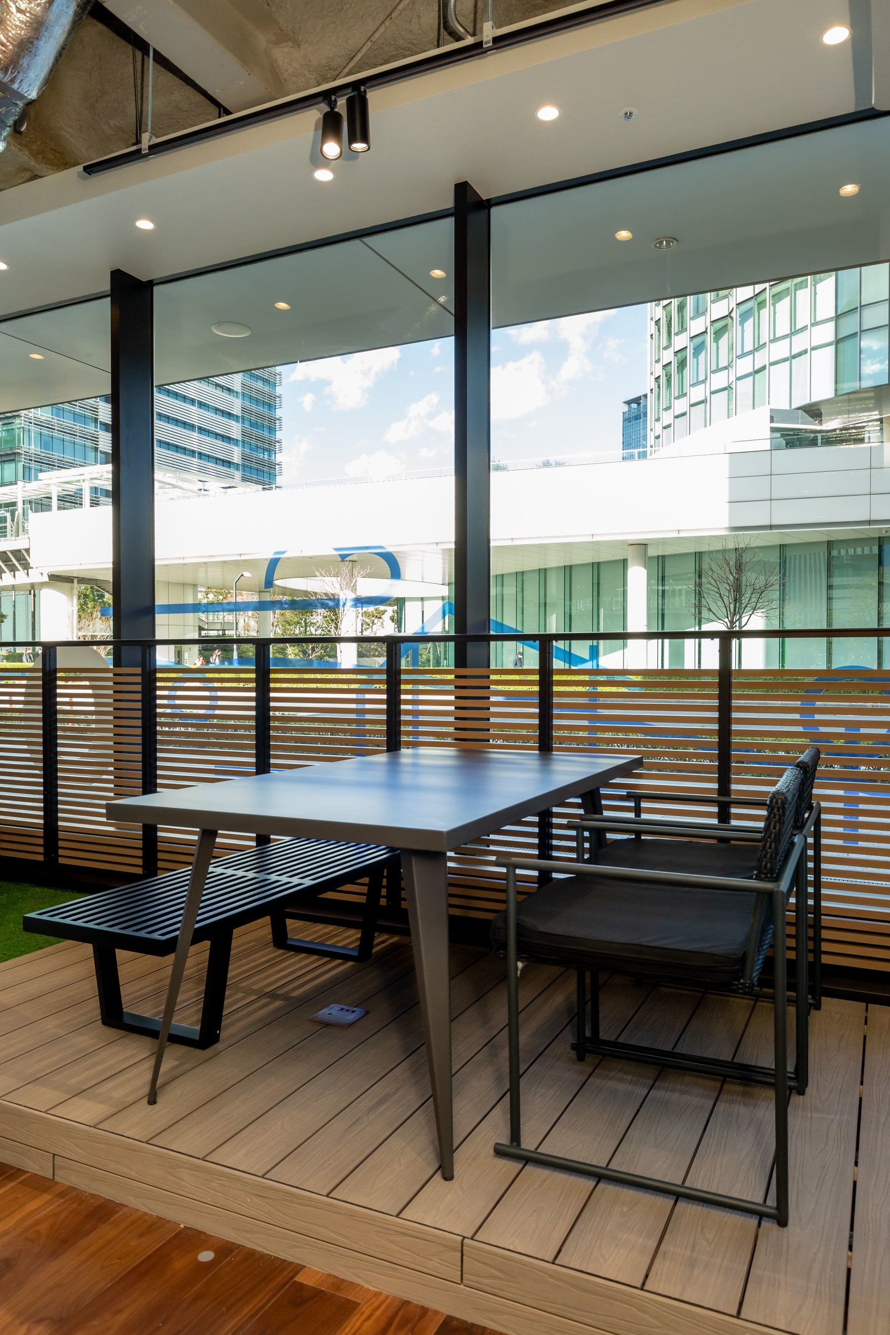 こうしたトレンドを踏まえ、ウッドデッキや人工芝で「ルーフバルコニー」が体験できるデッキエリアをご用意しています。実際の素材感だけでなく、デッキの活用イメージが湧くスペースです。