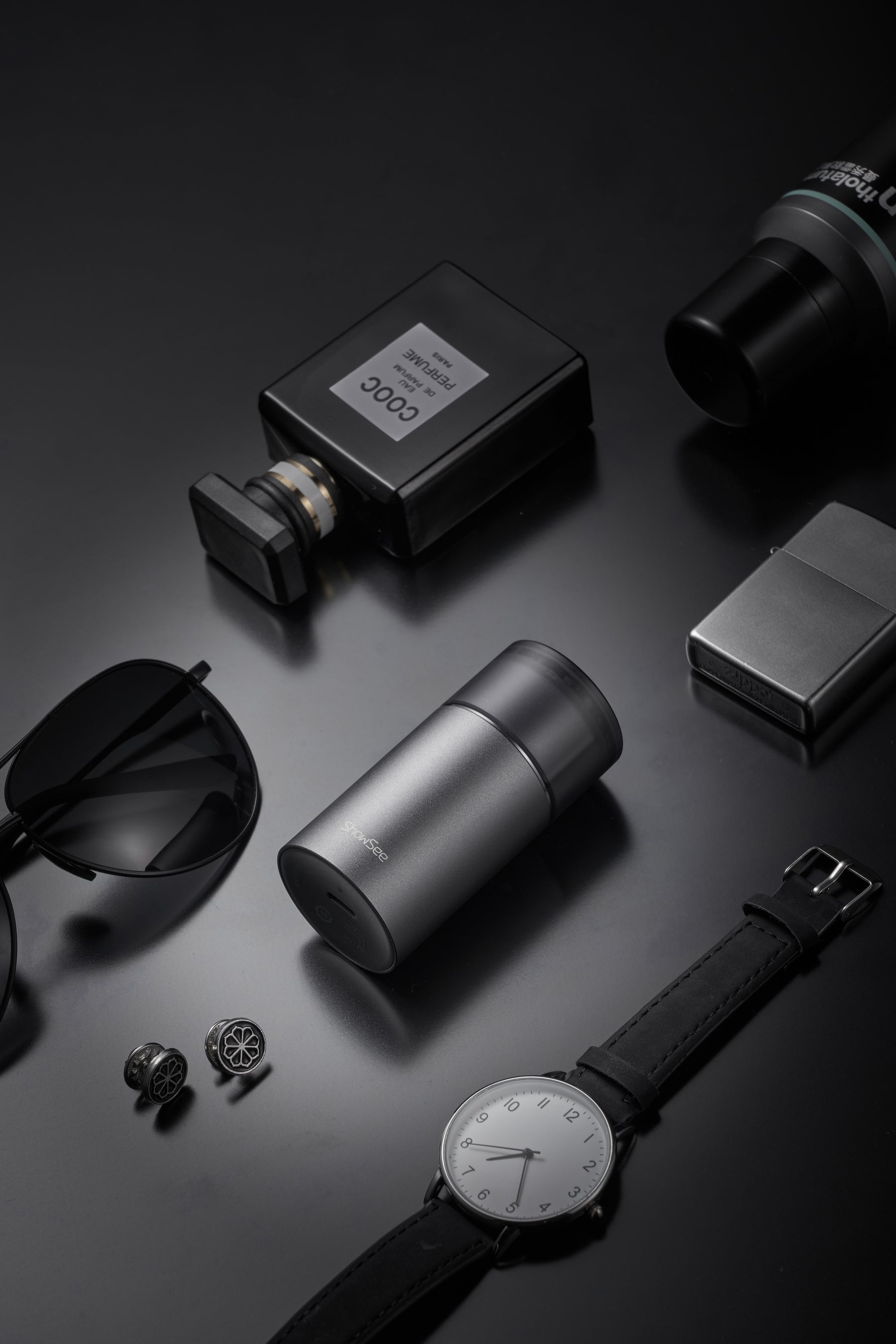 無駄をそぎ落とし、鞄に忍ばせても違和感のないミニマルかつコンパクトなデザイン。センサー起動式なのでボタンやスイッチのない統一されたビジュアルが特徴的です。