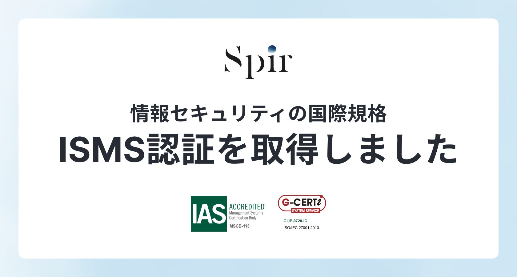 日程調整ビジネスカレンダーを提供するSpir(スピア)、国際規格の情報セキュリティマネジメントシステム(ISMS)認証を取得