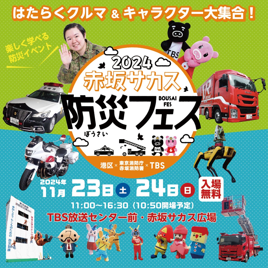 TBSと港区は、昨年2日間で約1万3000人の来場者を記録した大人気イベント「赤坂サカス防災フェス」を今年も11月23日(土・祝)~24日(日)の2日間にわたって、TBS放送センター前の赤坂サカス広場で開催します。