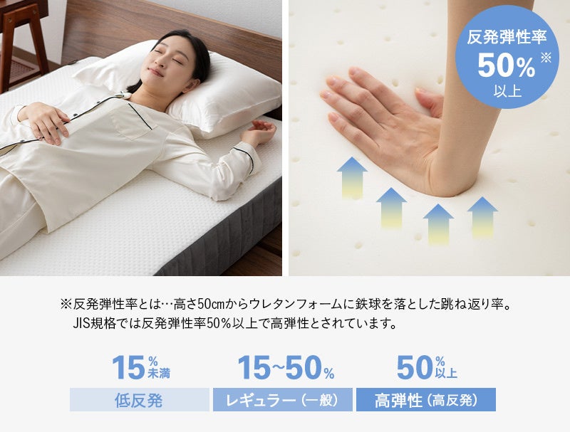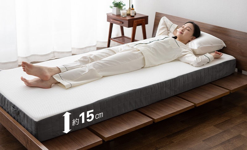 適度なやわらかさで身体にフィットし、跳ねるような弾力でふんわりと体が浮いているような極上の寝心地を提供します。