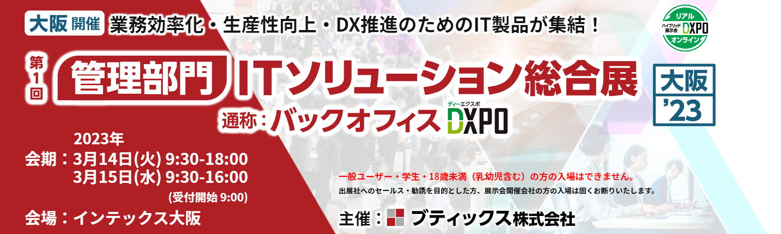 総 称:第1回【管理部門】ITソリューション総合展 大阪'23、通称:バックオフィスDXPO