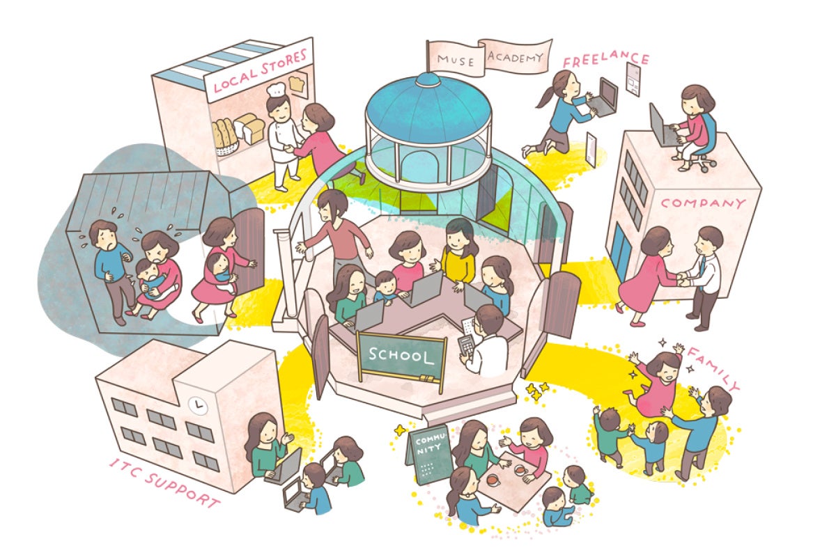 Muse Academy(ミューズアカデミー)は、女性がライフイベントに合わせて柔軟に働き方を選べる社会を目指す、完全オンラインで「ママが自宅でも・どこでも自由に働ける」スキルが学べるスクール&コミュニティです。