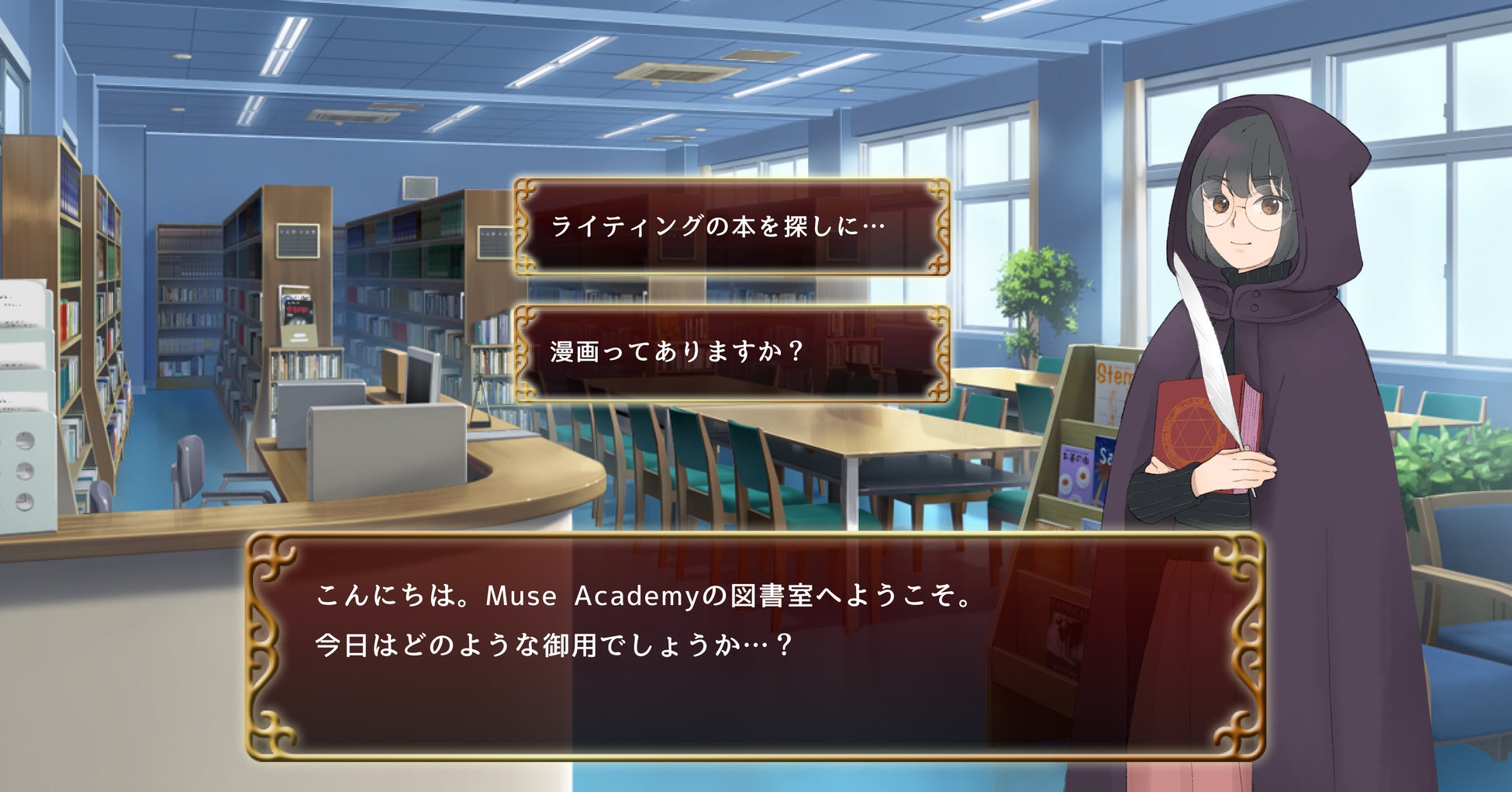 入学者はゲームの「主人公」としてMuse Academyに入学し、自分が選択したコースの講師からレッスンを受けながら、時には実践形式の課題を交えて知識とスキルを身につけていくことができます。