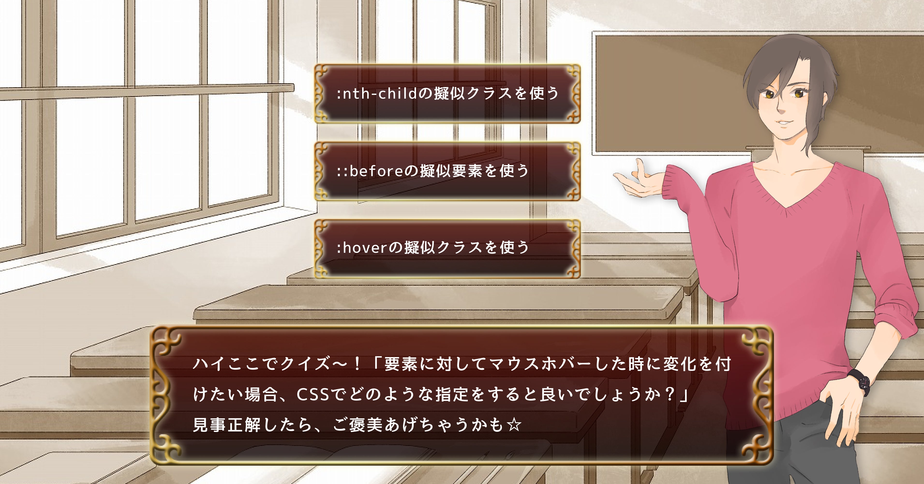 入学者は主人公として魅力的なキャラクターたちと交流を深めながら、一人前のWebデザイナーやライターを目指すことができます。