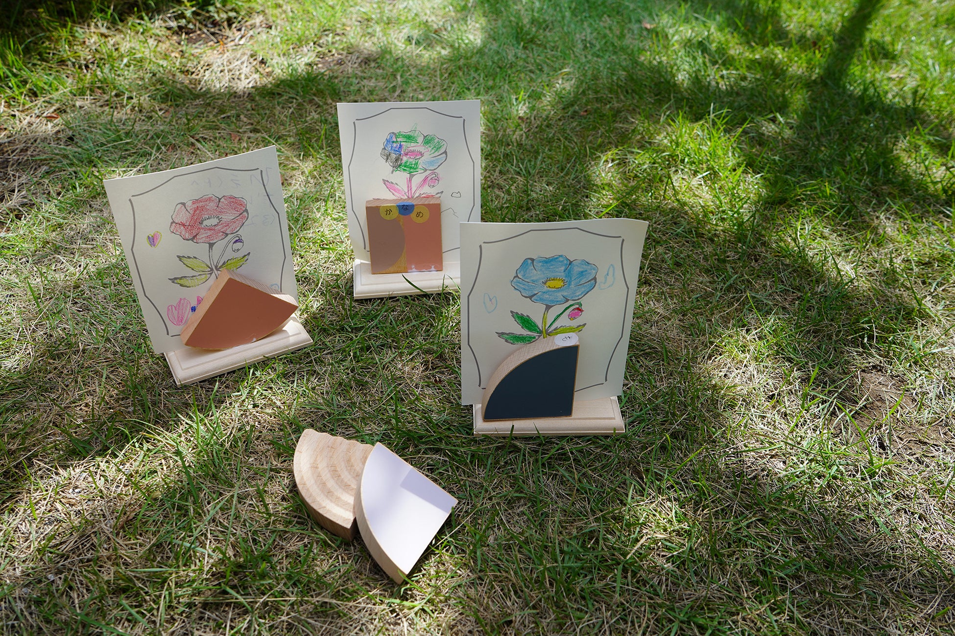 今回カードスタンドに立てるギフトカードをMARLMARLオリジナルで制作し、色を塗って完成させました。この作業を取り組む頃には、子ども達も明確にプレゼントする相手を意識し「ぱぱへ」などと宛名を書く子や「ままがすきな色で塗る」と話す子も多く見られました。相手を思ってものづくりをする、というギフトデザイナーの考え方をしっかりと体験している様子がありました。