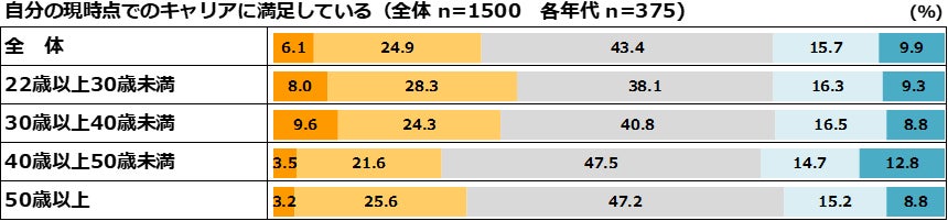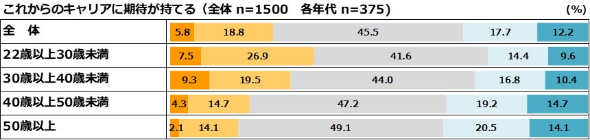 キャリア満足度の肯定的な回答は20代が最も高い結果となりました。キャリア期待値は、若い世代になるにつれて高くなることが明らかになりました。