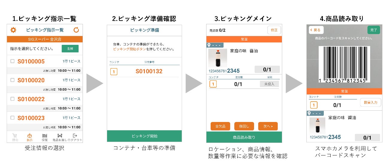 Android端末を使用して、直観的な操作でピッキング等の現場作業を行えます。