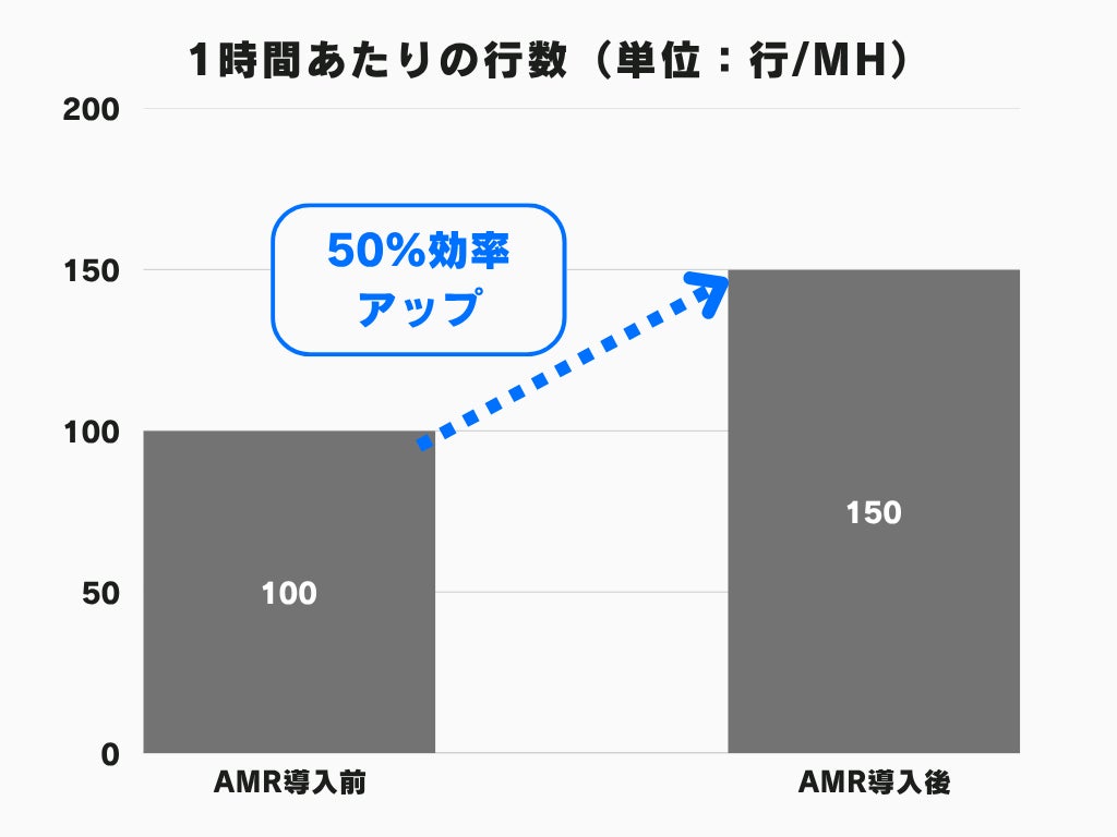 人手のみで作業していた場合と比較し、1時間あたりの処理行数が50%向上し、生産性が大幅に改善されました。