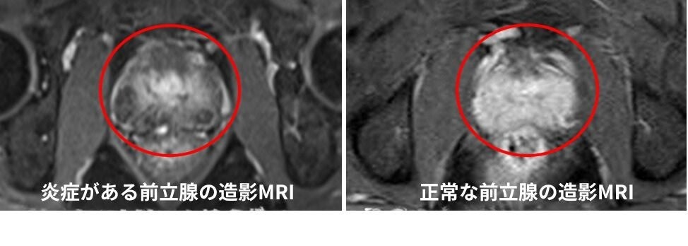 これらの炎症は不要にできた血管「モヤモヤ血管」と一緒にできる神経から痛みを誘発していることが最近の研究でわかってきました。そこで当クリニックでは慢性的な痛みの原因が前立腺にできるモヤモヤ血管にあると考え、造影MRIを用いて患部を確認したところ、9割近くの患者さんに痛みの炎症であるモヤモヤ血管が見つかりました。