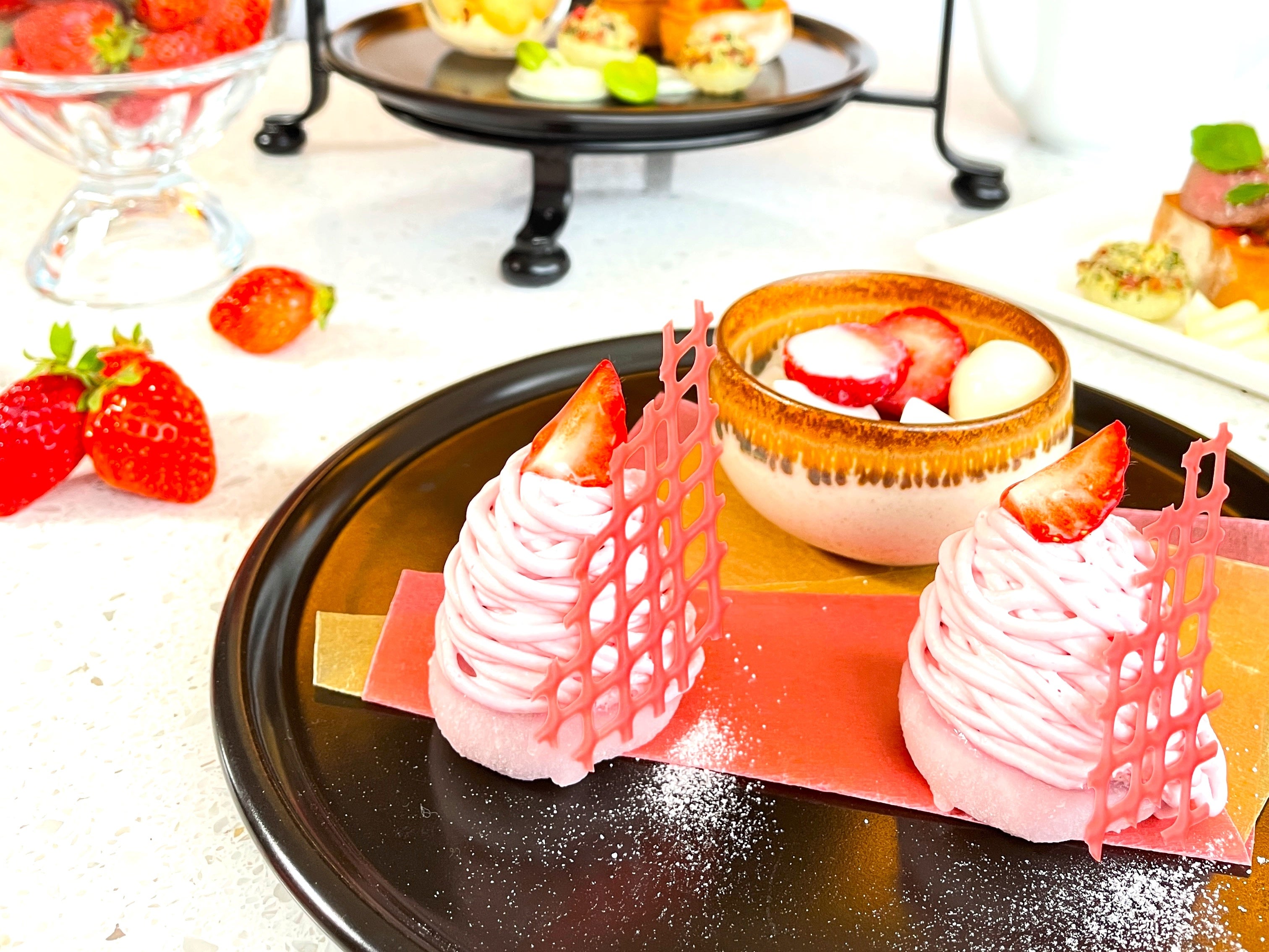 ・丸ごと一粒あまおう苺をお餅で包みんだ大福を土台に、いちごモンブランクリームを絞った贅沢な逸品です。