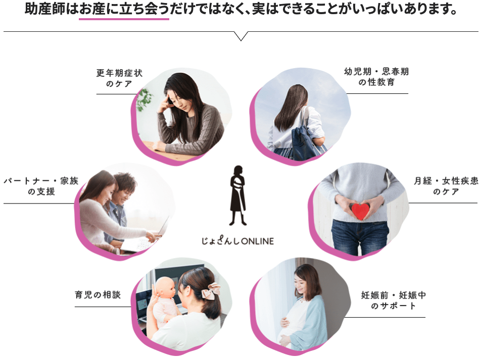 『じょさんしONLINE』は、「世界のどこにいても繋がる安心を」を理念にオンラインでの妊娠・出産・育児へのサポートを行うサービスを展開しており、2019年1月に開始してから述べ3000組以上のご家族にご利用頂いています。現在は、世界6ヵ国以上に在住する日本人助産師と共に、4言語対応で、個人相談サービス、また30種類以上の講座を展開しております。