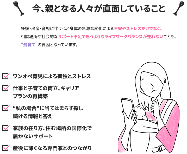- 事業内容:助産師相談サービス『じょさんしONLINE』運営(オンラインによる24時間助産師相談、産前産後のセミナー開催、法人向けセミナー・福利厚生サービスの提供)