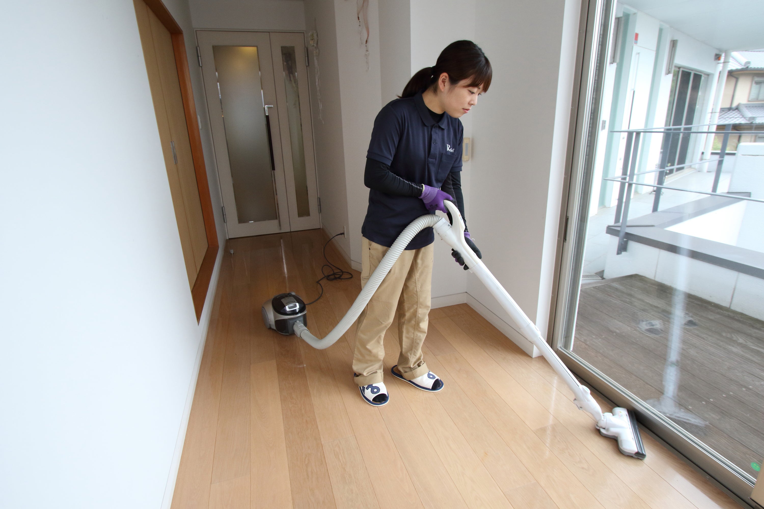 最後に掃き掃除や掃除機掛けを行い、作業完了前に最終チェックを行います。