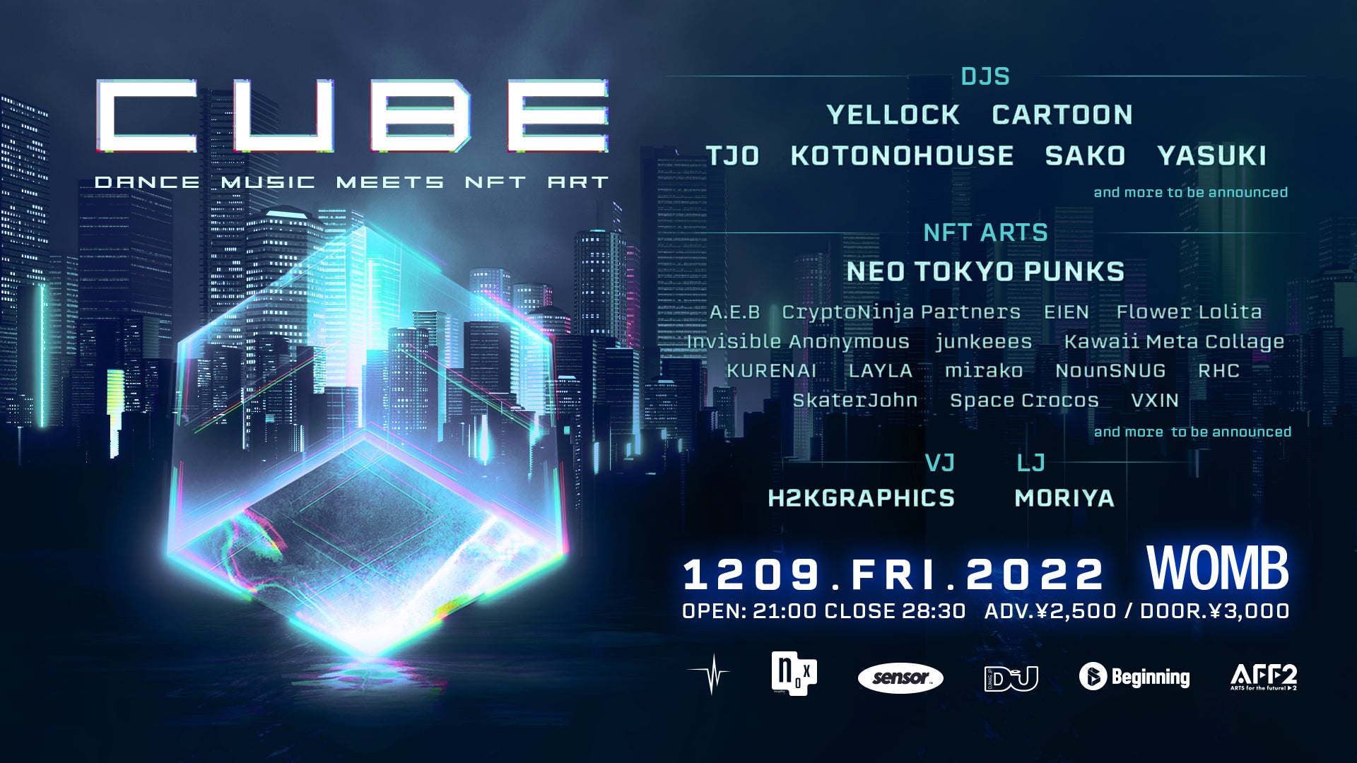 ダンスミュージック・NFTアートのコラボナイト「CUBE」12月9日渋谷WOMBにて初開催