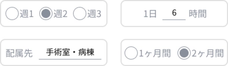 医療・介護施設の一部業務や勤務時間帯を切り出して、時短・短期アルバイトのお仕事を設定します。人手不足の配属先のほか、施設の雰囲気が伝わりやすい業務に入ってもらうこともおすすめです。