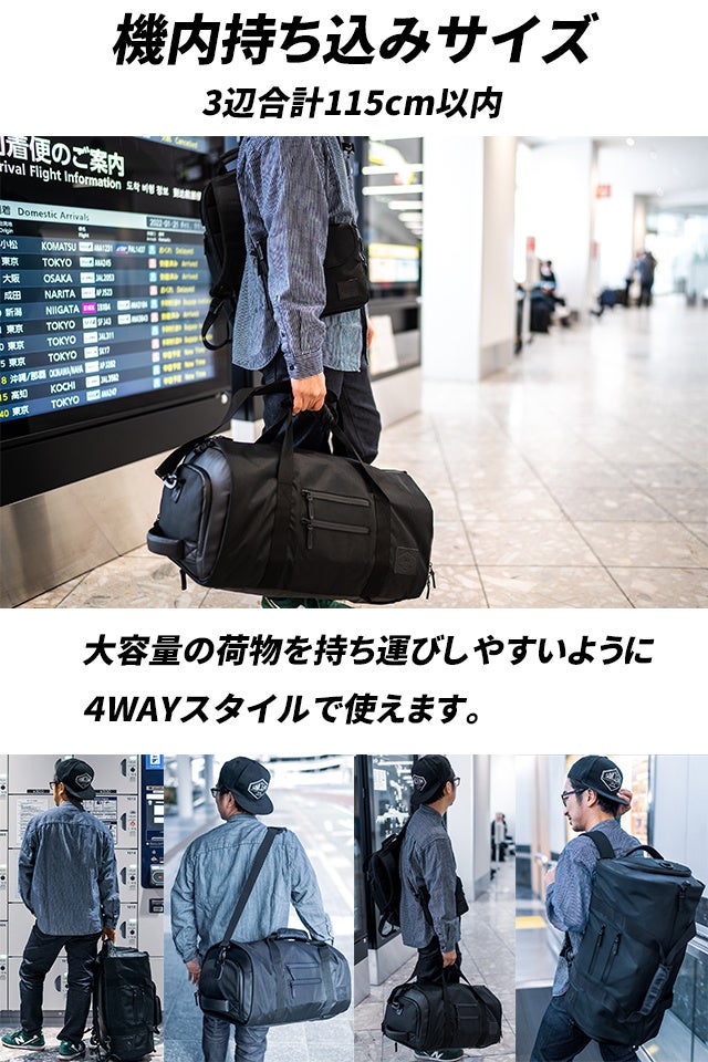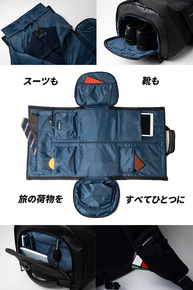 ボストンバッグ ・ ガーメントバッグ ・ バッグパック の機能を組み合わせデザインした進化型のボストンバッグになります。