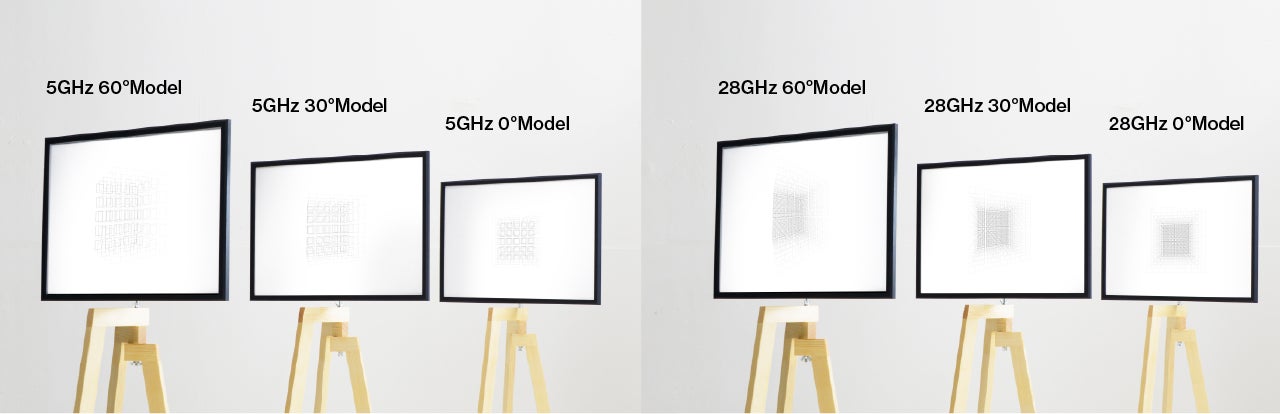 一般的な家庭用WIFIに対応した5GHzモデルと、5Gに対応した28GHzモデルの2種を展開しています。さらに次世代帯域への適用に向けて開発を進めています。 建物内で電波が届き難い場所の補佐や、無線大容量通信を必要とする場所での電波設計を用途に応じてパネルを貼るという手軽さで実現することが可能になり得ます。
