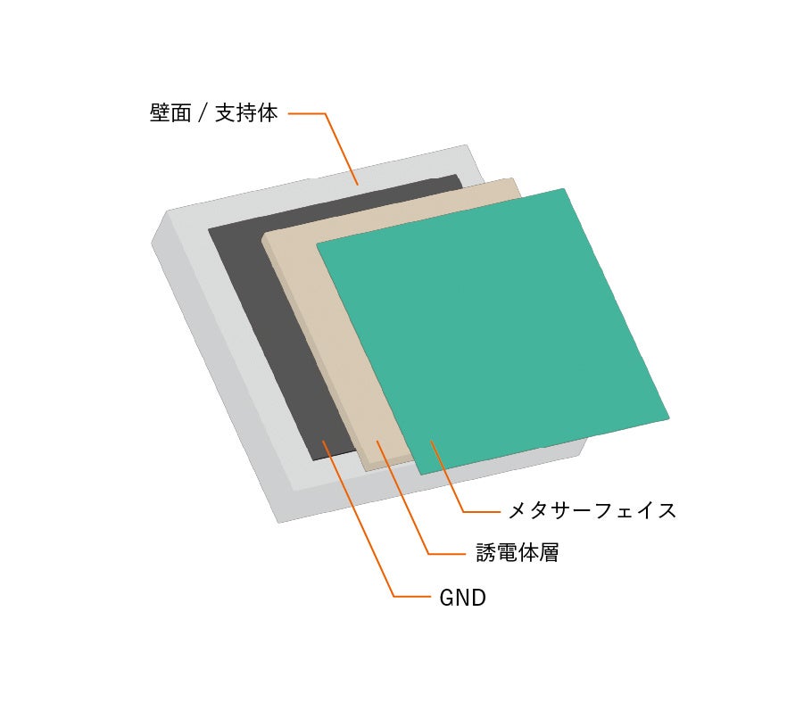 「メタッパネ」は、1mm厚の薄型パネルで、株式会社GOCCO.が独自に開発しているAgインクと印刷技術を用いたメタサーフェスを内蔵しています。これにより、精密な製造工程を経ることなく、高い品質の電波強化が実現できます。