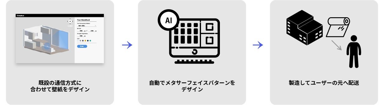 今後、専用アプリケーションで室内の電波設計を行い、適したメタサーフェスパターンの自動設計、製造までを担うサービスの開発に取り組んでいきます。