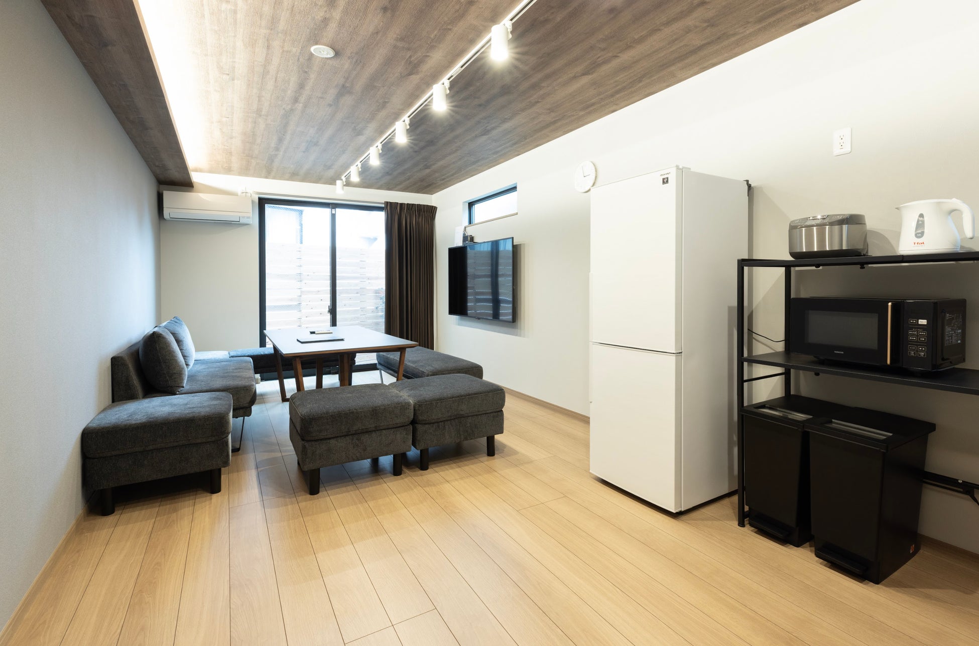 空き土地から設計・建築し生まれた戸建型ホテル。10人以上でも泊まれる1日1組限定の宿。博多駅や福岡空港にも好アクセスで、便利さと快適さを備えたホテルで福岡の旅をサポート。