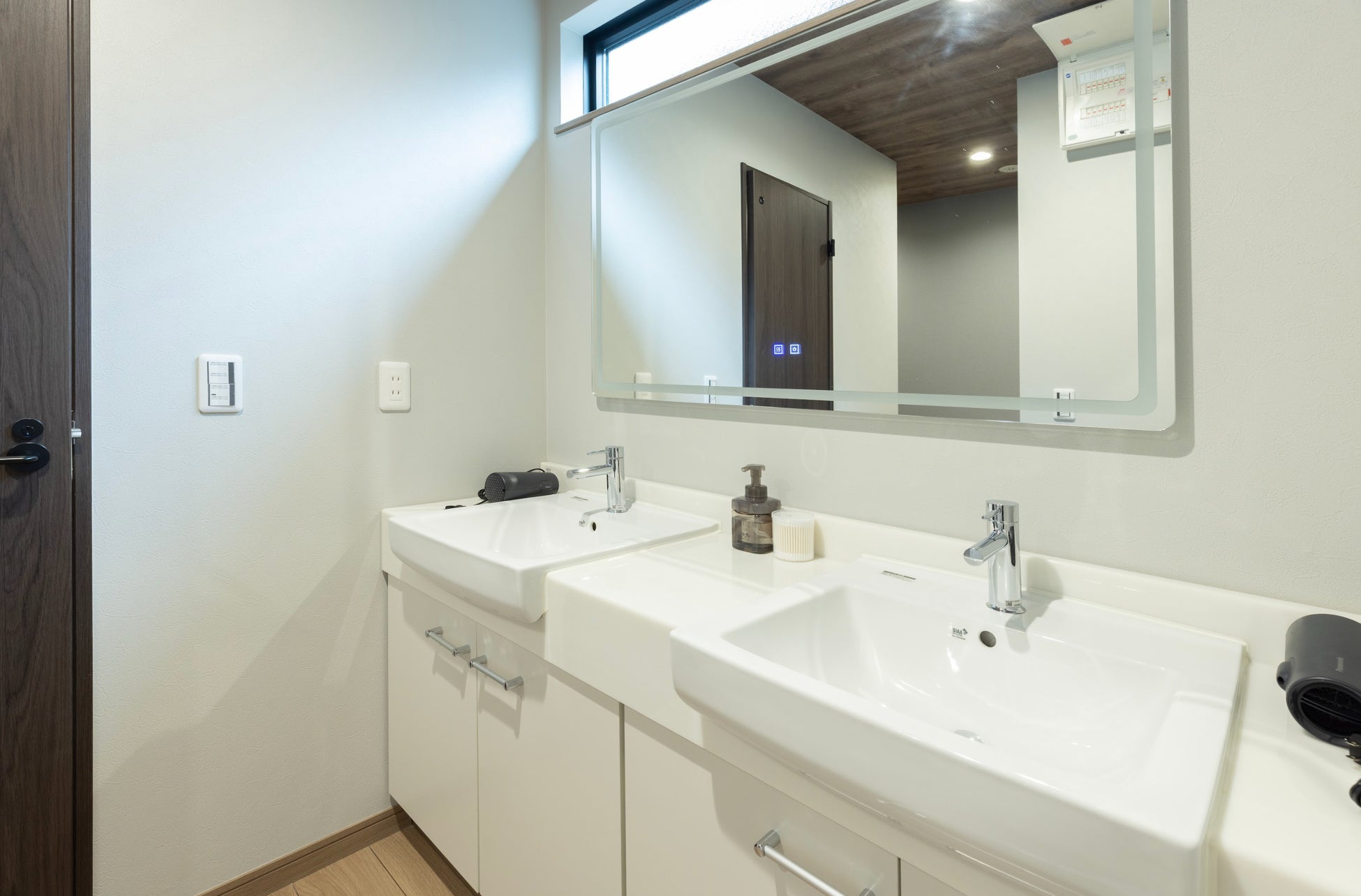 独立洗面台は大人数に嬉しい2台で備え付け。