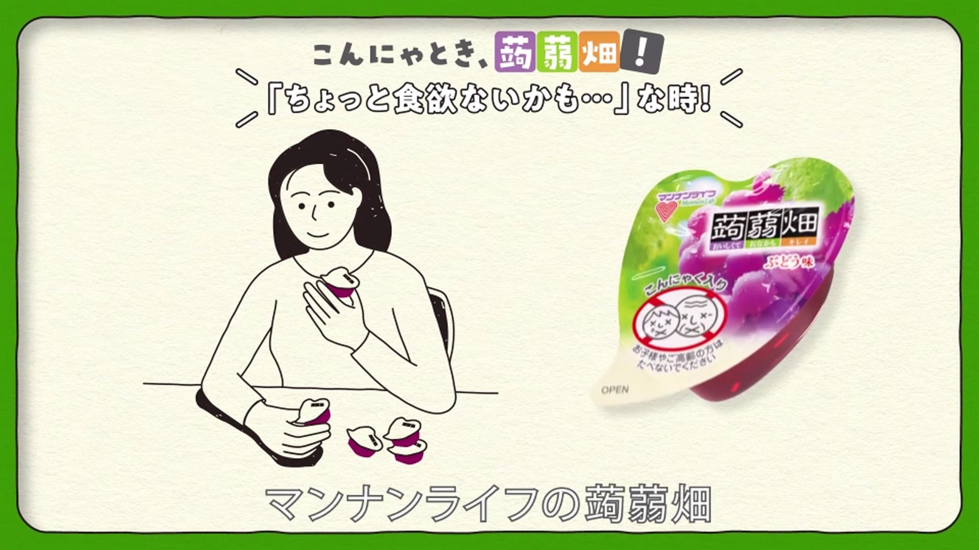 「こんにゃとき、蒟蒻畑!」は、蒟蒻畑を食べるのにぴったりな様々なシチュエーションを、楽しくわかりやすくご提案していくシリーズです。