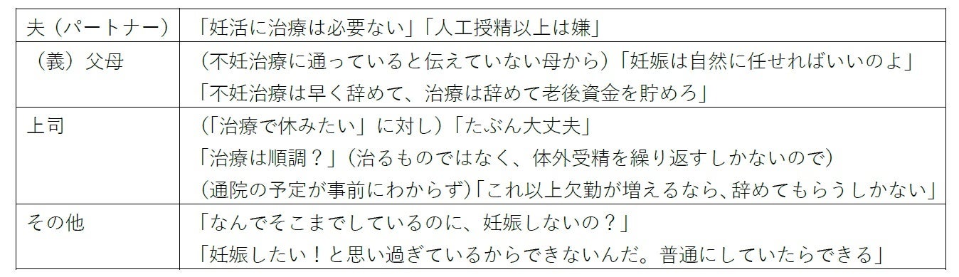 Q.8(不妊治療について)理解してもらえないと感じた言動があればお聞かせください。(一部抜粋)