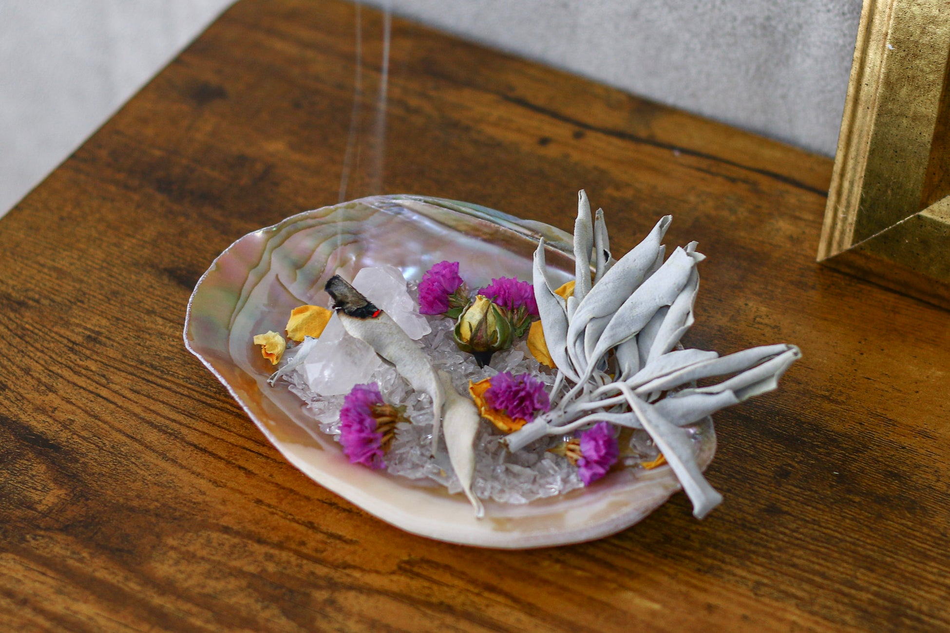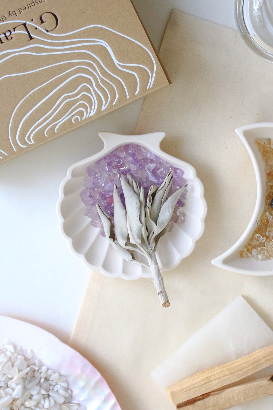 ホワイトセージと貝殻のプレートがセットになった、