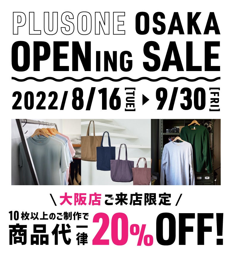 オリジナルTシャツやグッズ製作を店頭スタッフに相談できるショールーム「プラスワン大阪店」8月16日(火)新規オープン!