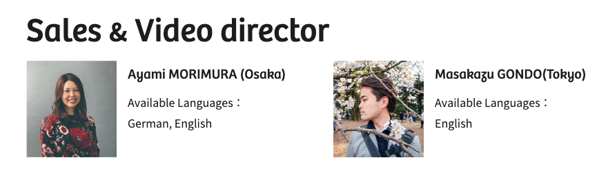 海外の文化に精通したメンバーが各国文化の視点から「現地の人に理解される」「海外で好感を持ってもらえる」動画の提案を行います。もちろん弊社スタッフは英語を筆頭に多言語対応が可能なので日本に進出したい海外企業向けに日本でのビジネス定着を促進する動画の提案も行います。