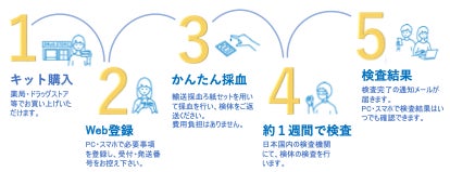 本サービスでは、新型コロナウイルスに対する抗体価を測定し、ワクチンの効果を把握することを目的としています。本サービスは、自宅や学校、職場などで自己採血し郵送することにより簡易に、ワクチン接種後に抗体がどれくらい保持できているか、抗体価のレベルの確認ができます。ワクチン接種後の抗体の保持状況には個人差がありますので、個人のワクチン接種後の抗体価を管理し安全・安心に日々を送れることに加え、ワクチン接種のタイミング確認にも利用できます。
