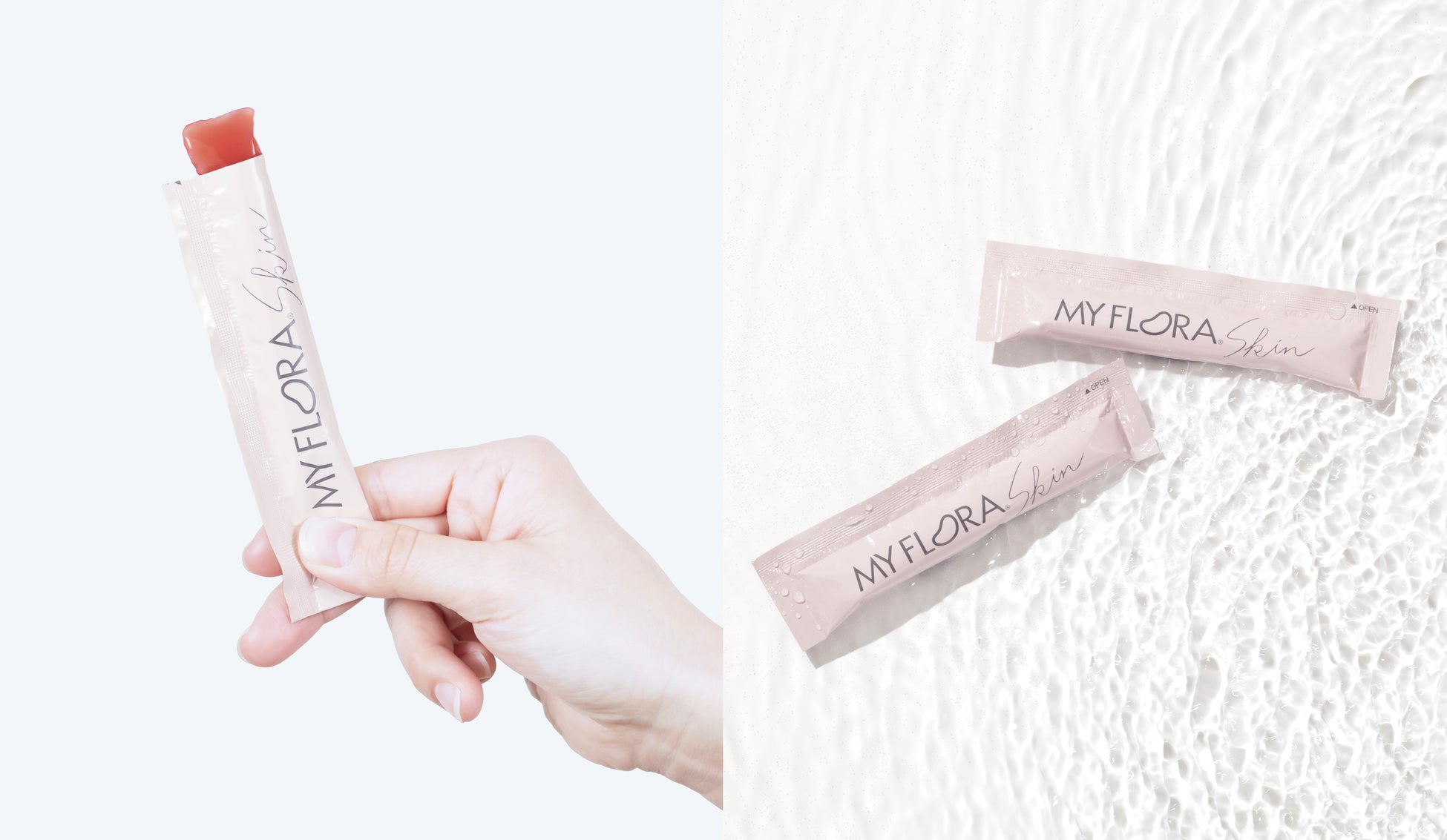 美容と健康に欠かせないおなかのケア。『マイ・フローラ スキン』は、忙しい日々のなかでも生きている植物乳酸菌が手軽に摂れるスティック形状の発酵ゼリー。おなかから働きかけることで、ストレスに負けないうるおいのあるミライをつくります。スキンは世界的にもユニークなプラントベース×プロバイオティクスの美容食です。